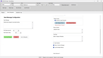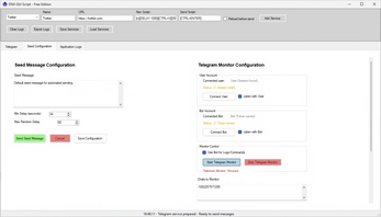 This is a Free Edition limited to 2 services, and each 10 messages will send a custom message from the program to every connected service.